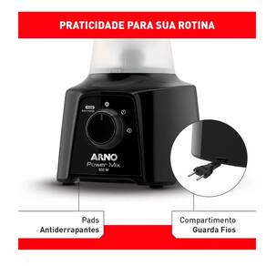 Liquidificador Arno Powermix 550W conta com 550W de potência e lâminas Zelkrom, feiras com aço inox de alta durabilidade, prático e perfeito para seu dia a dia!