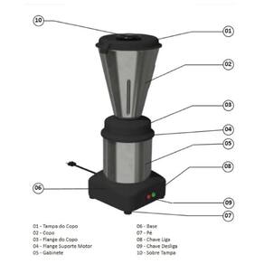 A perfeita vedação da tampa, aliada ao anteparo de segurança em aço inox e o sistema de encaixe sextavado do eixo, mais robusto e resistente, garantem a total integridade do profissional que estiver manipulando este liquidificador comercial. Copo produzido a partir de uma peça única de aço inox e com formato em "V", permite a formação de um vórtice que direciona todo o alimento para as lâminas, independente do volume, triturando de forma homogênea e em menor tempo. Sem soldas e sem frestas, possui cantos arredondados e por isso é de fácil limpeza e higienização, evitando o acúmulo de resíduos, uma das principais causas do mau cheiro e da proliferação de microrganismos. Possui tampa de borracha atóxica com dosador que garante boa vedação e a possibilidade de adicionar ingredientes durante o preparo.