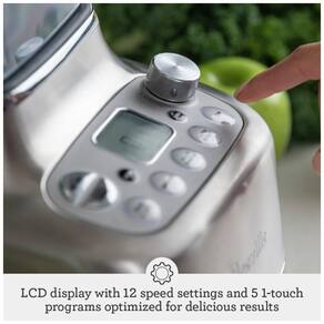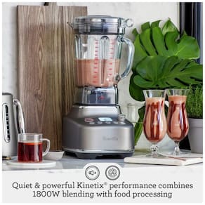 O liquidificador de grau comercial projetado para a cozinha doméstica. Com o motor mais potente, reconhecimento de jarra e tecnologia de supressão de ruído, o Super Q melhora a versatilidade e oferece uma otimização avançada de textura para texturas mais suaves. O Breville Super Q é um liquidificador de grau comercial super rápido, mais forte e mais pessoal. Com motor super potente de 1800 Watts, 5 programas com um toque e 12 configurações de velocidade, garante texturas suaves e macias com menos ruído devido à tecnologia de supressão de ruído. INCLUI ACESSÓRIO DE LIQUIDIFICADOR PESSOAL que permite misturar alimentos e bebidas diretamente no liquidificador pessoal. Compatível com o Vac Q (vendido separadamente), uma bomba de vácuo para liquidificação que remove o ar da jarra antes de liquidificar, garantindo texturas mais suaves, cores mais vibrantes e sabores mais ricos. Com 5 programas com um toque, 2 programas de smoothie para texturas aveludadas, função pulseice crush para transformar gelo em neve, função de sobremesas congeladas, e programa de sopa para fazer sopas de frio para quente facilmente. 12 configurações de velocidade para seleção fácil e otimização avançada de textura. Tecnologia de supressão de ruído para operação mais silenciosa. Tampão de assistência Breville com design de anel pull-and-auto clean function para limpeza fácil. Acompanha livro de receitas, soquete e espátula, além de jarra extra durável de 1.9 litros e copo pessoal de 710ml.
