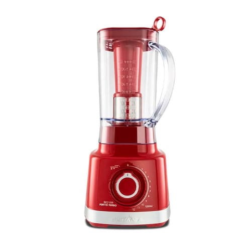Que tal preparar seus sucos e vitaminas com mais praticidade? O Liquidificador Britânia é perfeito para triturar todos os tipos de alimentos, sem deixar pedacinhos. Ele possui potência de 1200W e oferece 12 opções de velocidades para misturar suas receitas da melhor forma possível. Além disso, conta com jarra de plástico transparente com capacidade para 2 litros e filtro que separa a semente e bagaço.Caracteristicas:- Nº de velocidades: 12- Função pulsar: Sim- Função autolimpeza: Sim- Copo:Plástico- Filtro:Sim- Lâminas: Integradas ao copo- Lâminas em aço inox: Sim- Porta-fio: Não- Triturador de gelo: SimCaracterísticas Gerais:• 12 Velocidades + Função Ice + Função Pulsar + Função Autolimpeza• Sobretampa dosadora tipo xícara• 6 lâminas• Copo de plástico com capacidade total 3,0L• Capacidade útil de 2,0l• Tampa com alça na lateral para retirada• Base antiderrapante• Embutidor de Cordão• Potência de 1200WEspecificações:- Consumo de energia (kW/h): 1,2- Potência (W): 1200W- Tensão/Voltagem: 110V / 220V ( não é Bivolt )- Capacidade total do copo (litros): 3- Capacidade útil do copo (litros): 2- Conteúdo da Embalagem: 1 Liquidificador e 1 Manual de instruções- Garantia: 12 meses- Cor: Vermelho- Tipo de Tomada: 10A (4mm)- Tipo de Plugue: 2 Pinos