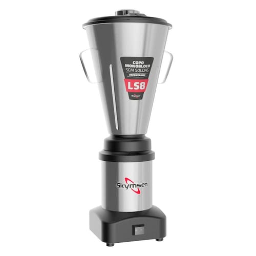 O Liquidificador Comercial Skymsen LS8 é ideal para restaurantes, cozinhas industriais, sorveterias, hotéis, cantinas, creches e hospitais, sendo referência em liquidificadores de baixa rotação. Com base e copo em aço inox, acoplamento metálico com eixo sextavado e motor de indução de 0,5 CV, entrega robustez e alta durabilidade. Possui rotação de 3.500 rpm, oferecendo torque suficiente para preparos pesados, quando liquidificadores de alta rotação não são recomendados. Perfeito para massas leves de bolos, sopas, sorvetes e pastas. Produzido a partir de uma peça única de aço inox e com formato em V, o copo cria um vórtice que direciona todo o alimento para as lâminas, garantindo trituração homogênea em menor tempo. Sem soldas nem frestas, com cantos arredondados, facilita a limpeza e higienização, evitando acúmulo de resíduos e mau cheiro. Conta com tampa de borracha atóxica com dosador, permitindo adicionar ingredientes durante o preparo.
