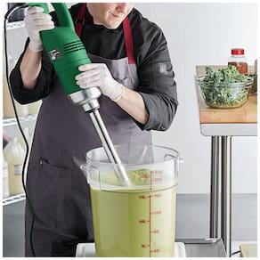 O Liquidificador de Imersão AvaMix IBHD21 é uma ferramenta versátil que toda cozinha comercial precisa. Possui um eixo de mistura de aço inoxidável removível de 53,34 cm, permitindo misturar, triturar, picar e purê alimentos com facilidade. Com potente motor de 1,27 cv, é capaz de misturar produtos a até 18.000 RPM com facilidade. Conta com velocidade variável de 8000 a 18.000 RPM para purês, chantilly e emulsões de até 238 litros. Possui botão de bloqueio para operação contínua sem as mãos e botão de segurança, garantindo praticidade e segurança. Compatível com os eixos AvaMix 10-21 e acessório de batedor 10. Os ventiladores de resfriamento garantem durabilidade, permitindo o uso prolongado sem superaquecimento. Fácil de limpar e armazenar, sendo possível acoplar diferentes tamanhos de eixos de mistura e acessórios vendidos separadamente. Requer conexão elétrica de 110 Volts.