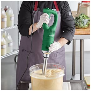 O liquidificador de imersão de uso médio AvaMix IBMD12 é uma ferramenta versátil que toda cozinha comercial precisa. Com um eixo de mistura de aço inoxidável removível de 30,48 cm e lâminas afiadas, permite misturar, triturar, picar e purê alimentos com facilidade. Seu motor de 0,76 cv oferece potência superior na sua classe, capaz de misturar até 30 litros de produto a até 16.000 RPM. Possui velocidade variável de 4000 a 16000 RPM para misturar, bater e emulsionar até 30 litros de produto. Conta com botão de travamento para operação contínua e sem as mãos. Com ventoinhas de resfriamento no corpo, garante durabilidade na cozinha comercial sem superaquecer. O eixo de mistura é lavável na lava-louças, destacando-se facilmente da base para limpeza eficiente. Além disso, permite alternar para outros tamanhos de eixo de mistura ou acessório de batedor vendido separadamente. Requer conexão elétrica de 110 Volts.