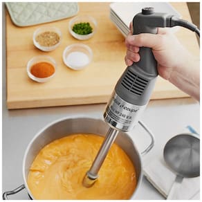 O Liquidificador de Imersão Robot Coupe MMP240VV Combi Mini é perfeito para quem deseja potência e versatilidade na cozinha! Com um motor de 290 watts e 10 velocidades variáveis de 2.000 a 12.500 RPM, este liquidificador é ideal para preparar frutas, legumes e muito mais. Sua pequena dimensão o torna ideal para cozinhas compactas, e as pás incluídas de 10 polegadas e o batedor de 7 pás são perfeitos para misturar pequenas quantidades de sopas, molhos, patês, massas, ovos e muito mais! Fácil de limpar, possui lâmina, eixo e sino em aço inoxidável, além de disco emulsificador e batedor removíveis. Requer conexão elétrica de 120V para funcionar.