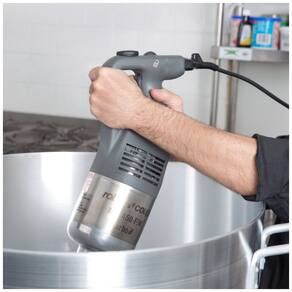 O Mixer de Imersão Robot Coupe MP450 Turbo é a escolha ideal para estabelecimentos comerciais que buscam desempenho confiável e duradouro. Com um motor potente de 1,095 CV e 720W, capaz de atingir até 1.500 RPM, este mixer oferece resultados excepcionais. Seu sistema de autorregulação de velocidade permite alcançar diferentes velocidades entre 250 e 1.500 RPM, garantindo controle total sobre o produto. Com cabo de energia removível, lâmina e haste em aço inoxidável removíveis para facilitar a limpeza, é ergonômico, durável e eficiente. A empunhadura ergonômica proporciona conforto ao operador, enquanto o botão de travamento permite operação contínua durante trabalhos extensos.