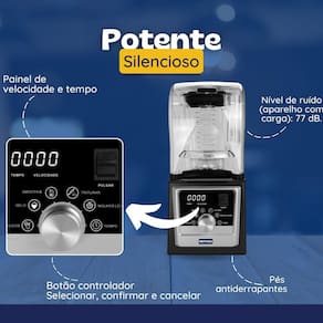 Liquidificador Digital Abafador Alta Rotação 2l Metvisa 220v Produto de Procedência e qualidade Alta potência, silêncio e tecnologia no seu dia a dia O BL212 Digital da Metvisa foi desenvolvido para quem busca alto desempenho na produção de bebidas e preparo de alimentos. Com um motor de 2000W e rotação de 25.000 RPM, ele tritura e mistura com eficiência, garantindo resultados perfeitos em pouco tempo. Sua tecnologia digital facilita o uso, enquanto o sistema de abafamento de ruídos proporciona mais conforto e silêncio durante o preparo. Com capacidade de 2 litros, é ideal para diversas receitas, desde sucos e vitaminas até molhos e cremes. Perfeito para sua cozinha ou negócio, o BL212 Digital une potência, praticidade e inovação. CARACTERÍSTICAS: Altura: 50 cm Comprimento: 24 cm Largura: 22 cm Peso: 7 Kg Consumo: 2 KW/H Potência: 2000 W Voltagem: 220 V Capacidade: 2 L Rotação: 25000 RPM Utilize o campo de perguntas em caso de dúvidas Dúvidas Frequentes: 1. Os produtos são novos todos os nossos produtos são produtos novos e com direta dos fabricantes. Marca: Não Informado Ean: 7899511926113