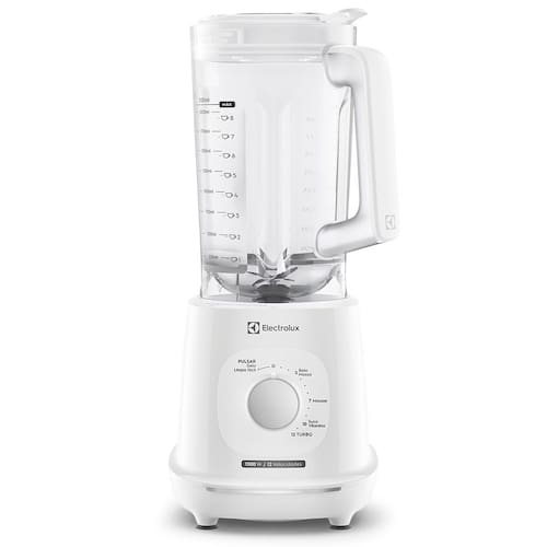 Prepare-se para revolucionar sua cozinha com o Liquidificador Electrolux 1300W 3,2L Efficient com TriForce 12 Velocidades Branco (EBL1310). Com a Tecnologia TriForce – que une lâminas resistentes à potência eficiente e alta velocidade –, este liquidificador oferece um desempenho avançado para o dia a dia. Capaz de triturar gelo até 4x1 mais rápido e aumentar o aproveitamento de alimentos em até 7x2, ele ajuda você a minimizar o desperdício. Mais agilidade nos preparos, eficiência em cada etapa e resultados consistentes para facilitar sua rotina na cozinha. A Função Pulsar 3 em 1 pode ser usada para receitas pesadas e preparos rápidos, triturar gelo ou tornar a limpeza do seu liquidificador muito mais prática. Ela ajuda a remover os restos dos alimentos até 2x³ mais rápido e economiza água no processo. São até 547 litros4 poupados por ano em comparação com a limpeza manual – o equivalente a 110 galões de água (5 L cada). Mais economia para você e uma escolha mais sustentável para o planeta. O Liquidificador Electrolux 1300W Efficient com TriForce (EBL1310) tem ainda 6 lâminas TruFlow, que são feitas de aço inoxidável e combinam resistência com precisão para entregar cortes mais eficientes. As lâminas laterais atingem os alimentos nas bordas da jarra, enquanto as intermediárias ajudam a triturar até mesmo os alimentos mais pesados, e as superiores finalizam com cortes finos e uniformes. O produto funciona em 12 velocidades e vem com 5 receitas predefinidas para maior precisão no preparo de bolos, massas, sucos e vitaminas. É equipado com uma jarra de plástico ultrarresistente, livre de Bisfenol A, com design ergonômico e uma generosa capacidade total de 3,2 litros. É recomendado o uso de acessórios originais Electrolux.