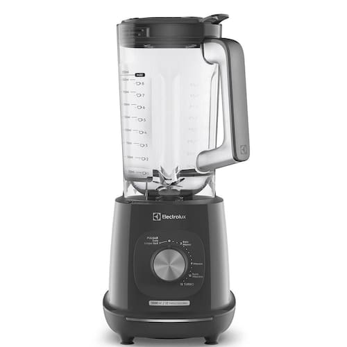 A Função Pulsar 3 em 1 pode ser usada para receitas pesadas e preparos rápidos, triturar gelo ou tornar a limpeza do seu liquidificador muito mais prática. Ela ajuda a remover os restos dos alimentos até 2x mais rápido e economiza água no processo. São até 547 litros poupados por ano em comparação com a limpeza manual o equivalente a 110 galões de água (5 L cada). Mais economia para você e uma escolha mais sustentável para o planeta. O Liquidificador Electrolux 1500W Efficient com TriForce (EBL1500) tem ainda 6 lâminas TruFlow, que são feitas de aço inoxidável e combinam resistência com precisão para entregar cortes mais eficientes. As lâminas laterais atingem os alimentos nas bordas da jarra, enquanto as intermediárias ajudam a triturar até mesmo os alimentos mais pesados. As superiores finalizam com cortes finos e uniformes. O produto funciona em 15 velocidades e vem com 5 receitas predefinidas para maior precisão no preparo de bolos, massas, sucos e vitaminas. É equipado com uma jarra de plástico ultrarresistente, livre de Bisfenol A, com design ergonômico e uma generosa capacidade total de 3,2 litros.