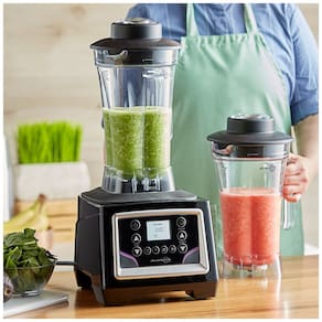 O liquidificador AvaMix é o complemento ideal para a sua cozinha, graças à sua capacidade superior de triturar gelo, criar deliciosas bebidas mistas e smoothies, além de preparar spreads, salsas e molhos deliciosos. Equipado com base de plástico ABS e conjunto de lâminas de aço inoxidável pesado, este liquidificador está pronto para diversas tarefas em sua cozinha comercial. Possui um motor de 3,55 cv e 1800W, lâminas de aço inoxidável pesado e um seletor de velocidade. Para maior conveniência, o botão de pulso oferece uma maneira rápida e fácil de acionar o liquidificador em alta velocidade. Este liquidificador vem com duas jarras de 1,89 Litros feitas de plástico Tritan livre de BPA. Ambas oferecem máxima durabilidade em qualquer aplicação. A base do liquidificador possui um painel de toque fácil de usar, permitindo alterar a velocidade, configurar um temporizador ou usar o botão de pulso. A tampa de duas peças facilita a adição de ingredientes em qualquer estágio do processo de mistura. A construção durável e design elegante tornam este liquidificador ideal para uso comercial.