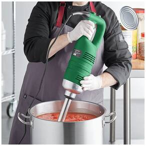 Com um eixo de mistura de aço inoxidável removível de 35,56 cm, velocidade variável de 8000 a 18000 RPM e capacidade de até 68 Litros, o Liquidificador de Imersão de Alta Performance AvaMix IBHD14 14 é a ferramenta versátil que toda cozinha comercial precisa. Equipado com um potente motor de 1,27 cv, este liquidificador é ideal para sopas, molhos, massas ou mousses, misturando produtos a até 18.000 RPM. O mecanismo de velocidade variável permite ajustar facilmente a velocidade de acordo com a necessidade, proporcionando controle total ao operador. Além disso, conta com um botão de bloqueio para operação contínua sem as mãos. Com este liquidificador, você pode misturar, triturar, picar e purê alimentos com facilidade. As aletas de resfriamento garantem que este liquidificador tenha um desempenho excepcional na cozinha comercial, sem superaquecimento. Fácil de limpar e armazenar, o eixo de mistura se destaca da base. Adapta-se facilmente a outros eixos de mistura AvaMix vendidos separadamente, oferecendo uma experiência conveniente e amigável ao usuário. Requer uma conexão elétrica de 110V para operação.