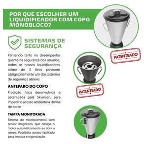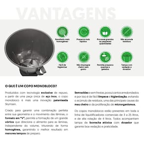 A nova Linha L foi projetada para atender às exigências de desempenho, robustez e eficiência nas cozinhas profissionais. Essa linha traz um motor de indução mais potente, silencioso e de alta durabilidade. O copo monobloco em aço inox, com design em V, favorece a formação de um vórtice que tritura os ingredientes de forma homogênea e eficiente. Sua construção sem soldas e frestas facilita a higienização. Equipados com um motor de indução de 3.500 rpm, os liquidificadores da Linha L são ideais para uso contínuo, oferecendo baixo nível de ruído e alta resistência ao desgaste. O acoplamento metálico sextavado e as lâminas reforçadas garantem uma transmissão de torque mais eficiente e a capacidade de suportar preparos pesados, como sopas, cremes e smoothies. Além disso, a chave seletora blindada possibilita o uso bivolt, adaptando-se perfeitamente às necessidades do estabelecimento. Os liquidificadores da Linha L são compatíveis com os copos e lâminas da linha LS.