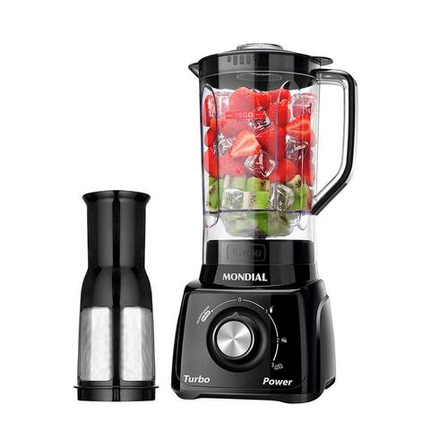 Com 500W de potencia, copo de 2,2L , além de 3 velocidades + pulsar, função autolimpeza e tampa com medidor, o Power Turbo L-99-FB é um liquidificador de montagem rápida e prática. Ele tem melhor desempenho nas receitas do dia a dia, como sucos, vitaminas, bolos, sopas e patês. Seu copo de 2,2 L é ultrarresistente a quedas e riscos e não pega cheiro. E ele ainda tem a função autolimpeza, facilitando na hora de limpar. Graças ao seu filtro, entra a fruta, e sai o suco ou molho pronto, sem semente. A tampa tem um medidor de 40ml removível, para você adicionar ingredientes sem desligar. Já a base antiderrapante traz mais segurança e seu guarda fio faz o liquidificador caber perfeitamente no seu armário.