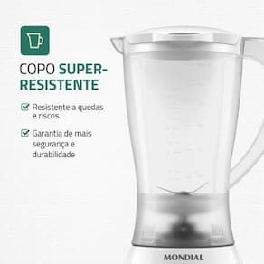 RESISTENTE A QUEDAS E RISCOS: O copo dos liquidificadores Mondial é super-resistente e garante mais durabilidade para seu aparelho.