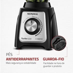 "O Liquidificador Mondial Turbo Glass L-1400-GI é perfeito para dar um toque de sofisticação à sua cozinha. A jarra de vidro, além de ser resistente a variadas temperaturas, sem absorver odores ou manchas, possui um design superelegante e exclusivo. O liquidificador tem a superpotência de 1.400W e garante um desempenho excelente no preparo das receitas. Conta com 12 velocidades, 6 lâminas em aço inox e faca removível. Saiba mais sobre o L-1400-GI: