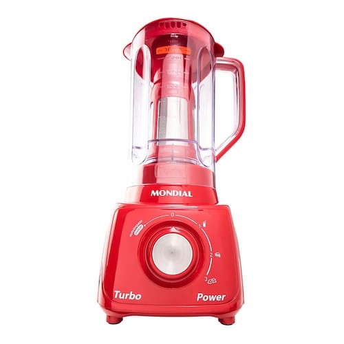 Com 550W DE POTÊNCIA, COPO DE 2,2 l, além de 3 VELOCIDADES + PULSAR, FUNÇÃO AUTOLIMPEZA E TAMPA COM MEDIDOR, o Power Turbo L-99-FR é um liquidificador vermelho, de montagem rápida e prática. Com POTÊNCIA DE 550W, ele tem melhor desempenho nas receitas do dia a dia, como sucos, vitaminas, bolos, sopas e patês. Seu copo de 2,2 l é ULTRARRESISTENTE a quedas e riscos e NÃO PEGA CHEIRO. Ele tem 3 VELOCIDADES + PULSAR, para uma mistura mais rápida. E ele ainda tem a FUNÇÃO AUTOLIMPEZA, facilitando na hora de limpar! Graças ao seu FILTRO, entra a fruta, coa e sai o suco ou molho pronto, sem semente. A tampa tem um MEDIDOR DE 40 ml removível, para você adicionar ingredientes sem desligar. Já a BASE ANTIDERRAPANTE traz mais segurança e seu GUARDA-FIO faz o liquidificador caber perfeitamente no seu armário. O Liquidificador Power Turbo L-99-FR foi desenvolvido para USO DOMÉSTICO, sendo melhor para uso residencial. Tudo isso com 1 ANO DE GARANTIA MONDIAL.