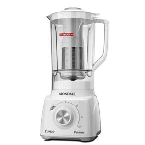 Com 550W de potência, copo de 2,2 l, além de 3 velocidades + pulsar, função autolimpeza e tampa com medidor, o Power Turbo L-99-WG é um liquidificador preto, de montagem rápida e prática. Com potência de 550W, ele tem melhor desempenho nas receitas do dia a dia, como sucos, vitaminas, bolos, sopas e patês. Seu copo de 2,2 l é ultrarresistente a quedas e riscos e não pega cheiro. Ele tem 3 velocidades + pulsar, para uma mistura mais rápida. E ele ainda tem a função autolimpeza, facilitando na hora de limpar! Graças ao seu filtro, entra a fruta, coa e sai o suco ou molho pronto, sem semente. A tampa tem um medidor de 40 ml removível, para você adicionar ingredientes sem desligar. Já a base antiderrapante traz mais segurança e seu guarda-fio faz o liquidificador caber perfeitamente no seu armário. O Liquidificador Power Turbo L-99-WG foi desenvolvido para uso doméstico, sendo melhor para uso residencial. Tudo isso com 1 ano de garantia Mondial.Modelo - L-99 WGCor - Branco/CinzaVoltagem (Tensão) - 127V/220VItens inclusos - 01 Liquidificador - Manual de InstruçõesMaterial do copo - PPCapacidade (Total) - 2,2LCapacidade (Útil) - 1,6LPotência - 550WVelocidades - 3 VelocidadesFunção pulsar - SimFunção auto-limpeza - SimFiltro - SimDimensões do produto - 41cm x 21cm x 20cm (AxLxP)Peso do produto - 2kgGarantia - 1 ano