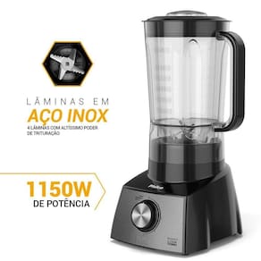 Visual moderno e toda a potência que você precisa para suas receitas! O Liquidificador Philco PLQ1411P 4 velocidades 2,7L 1150W.
