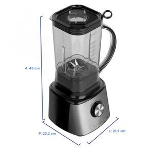 Capacidade ideal para toda a família O copo em polipropileno tem capacidade total de 3L -sendo 2L úteis-, o que permite preparar porções maiores sem abrir mão da segurança e da estabilidade. A tampa com dosador facilita a adição de ingredientes durante o uso.