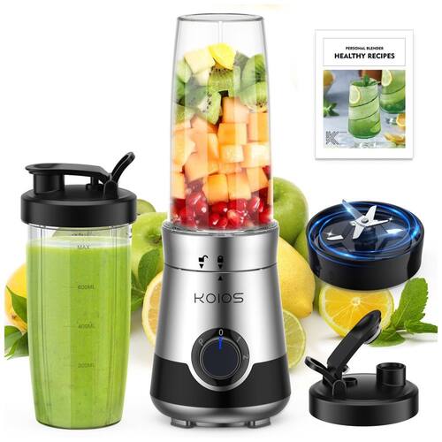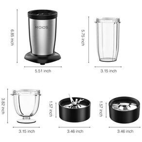Lâminas de aço inoxidável 304 atualizadas KOIOS bullet smoothie maker juice blender com 6 folhas cruzadas e design de lâminas planas de 2 folhas permite misturar e extrair nutrientes facilmente. Transforme os alimentos integrais mais duros em batidos nutritivos, batidos e manteiga de frutos secos em 10 segundos.