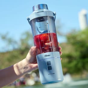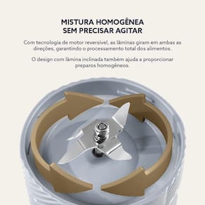Liquidificador portátil sem fio, jarra em Tritan resistente, motor reversível, lâminas de aço inox, bateria recarregável via USB-C, LEDs indicadores de carga, trava de segurança, tampa à prova de vazamentos.Capacidade total de garrafas