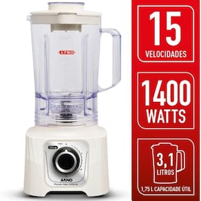 Liquidificador power max marfim 1400w 220v ln64 ln5571b2 Ln5571b2 power max 1400w regular 220v ln64 O liquidificador arno power max 1400w é para quem quer mais são 15 velocidades e 1400w de potência, além de uma jarra super robusta de 3, 1l de capacidade para fazer grandes quantidades para toda a família. Conta com o poder das lâminas powelix - 4 lâminas super afiadas que proporcionam diferentes ações no preparo. Com o arno power max 1400w você tem máxima potência, eficiência e design para sua cozinha. um eletrodoméstico indispensável na sua casa. O liquidificador arno liquidificador o ajudará a obter resultados incríveis em tudo o que você preparar, seja para desfrutar de uma bebida gelada, de molhos e sopas, ou de sobremesas deliciosas. Tenha-o sempre ao alcance da sua mão