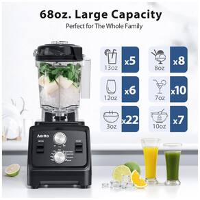 Motor de Alta Potência de 1800W: O liquidificador Aeitto conta com um motor profissional de até 1800 watts e velocidade máxima de 25.000 RPM, ideal para processar rapidamente ingredientes e gelo, criando bebidas, smoothies e moendo diversos tipos de pós. Equipado com um sistema de proteção contra superaquecimento, garante um uso seguro e eficiente.