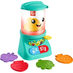 Máquina de smoothie Fisher-Price Laugh & Learn para bebês e crianças pequenas para contar e colorir o liquidificador Pretend Blender com música e luzes para maiores de 9 meses - Brinquedo didático interativo Pretend Blender com luzes, música e brincadeiras práticas frescas da fazenda - Pressione os 2 botões para luzes coloridas e mais de 25 músicas, sons e frases que ensinam cores, contagem de 1 a 10 e causa e efeito - Vem com 5 peças de frutas e vegetais para colocar no liquidificador; a alavanca para ver os ingredientes girarem - A tampa se abre para uma brincadeira divertida de colocar e tirar - Ajuda a fortalecer as habilidades motoras finas e incentive brincadeiras criativas para bebês e crianças de 9 meses a 3 anos