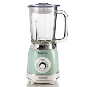 As lâminas de aço inoxidável também podem cortar gelo finamente, para preparar raspadinhas caseiras ou coquetéis refrescantes. O Liquidificador Vintage Ariete Verde 1,5 Litros 220v com copo de vidro é potente e funcional, perfeito para dar um toque de estilo à sua cozinha. Descubra toda a linha Ariete Vintage e complete a coleção com os eletrodomésticos mais emblemáticos de sempre.