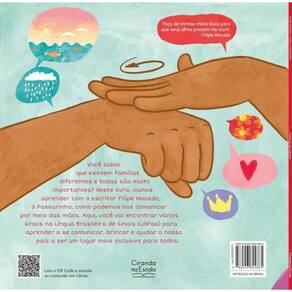 Você sabia que existem famílias diferentes e todas são muito importantes Neste livro, vamos aprender com o escritor Filipe Macedo, o Passarinho, como podemos nos comunicar por meio das mãos. Aqui, você vai encontrar vários sinais na Língua Brasileira de Sinais Libras para aprender a se comunicar, brincar e ajudar o nosso país a ser um lugar mais inclusivo para todos. História acessível em Libras.