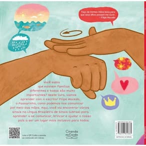 Você sabia que existem famílias diferentes e todas são muito importantes Neste livro, vamos aprender com o escritor Filipe Macedo, o Passarinho, como podemos nos comunicar por meio das mãos. Aqui, você vai encontrar vários sinais na Língua Brasileira de Sinais Libras para aprender a se comunicar, brincar e ajudar o nosso país a ser um lugar mais inclusivo para todos. História acessível em Libras.