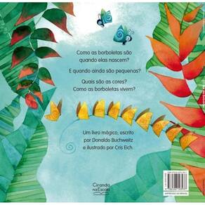 Como as borboletas são quando elas nascem E quando ainda são pequenas Quais são as cores Como as borboletas vivem Um livro mágico, escrito por Donaldo Buchweitz e ilustrado por Cris Eich.