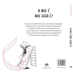 Será que você adivinha o que é que tem em cada página deste livro Será uma caixa Um gato Uma banheira Um balão Ou tudo isso não é o que parece ser O que é que isso é Revela o invisível do imaginar da criança. Um livro sobre descobertas, significância e o lúdico que há no mágico universo infantil.