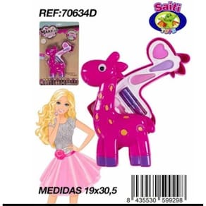 Little Beauty Girafa Kit Maquiagem Infantil O estojo de maquiagem little beauty possui estojo de sombra, batom , . os modelos são fofos e encantadores. Ideal para as meninas que gostam de deixar suas bonecas sempre lindas e maquiadas. Imagem meramente ilustrativa. O produto pode ter variação de cor ou desenho, porém as características gerais são as mesmas especificadas na descrição do produto. Medidas do Produto: 5x8x30 cm Marca: Não Informado Ean: 7899632511038
