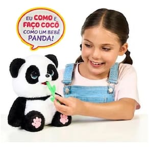 Alimente o panda com o bambu incluso e veja como ele reage comendo e até "fazendo cocô", promovendo uma experiência realista e divertida.