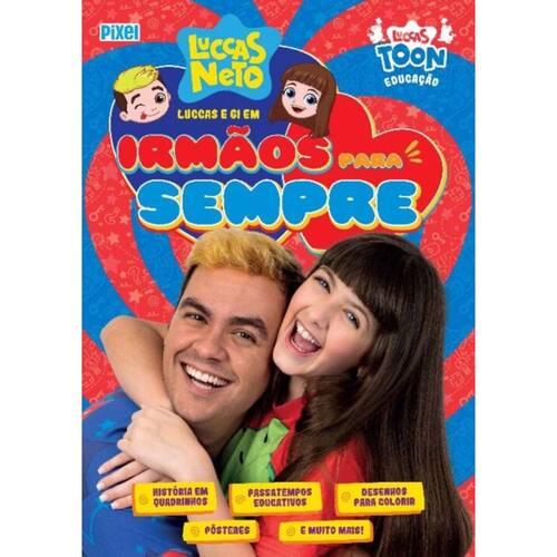 Com mais de 32 milhões de inscritos em seu canal no , Luccas Neto é um verdadeiro fenômeno entre a criançada!Com sua imaginação e criatividade, ele criou um incrível universo de personagens que encantam e inspiram o público infantil. Entre eles, estão Luccas e Gi, dois irmãos superunidos que vivem diversas aventuras e ensinam muito sobre amor e cumplicidade. LUCCAS E GI EM IRMÃOS PARA SEMPRE é um convite ao leitor para mergulhar nessa linda parceria e conhecer os mais variados sentimentos que costumam fazer parte do relacionamento entre irmãos, como admiração, companheirismo, união, amor e até ciúme, não é mesmo Tudo isso, é claro, sem deixar de fora todas as travessuras e aventuras que eles adoram! Ficou animado Então mergulhe nesta novidade e divirta-se muito ao lado de Luccas e Gi!