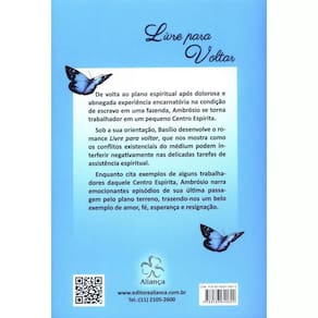 De Volta Ao Plano Espiritual Após Dolorosa E Abnegada Experiência Encarnatória Na Condição De Escravo Em Uma Fazenda, Ambrósio Se Torna Trabalhador Em Um Pequeno Centro Espírita. Sob A Sua Orientação, Basílio Desenvolve O Romance Livre Para Voltar, Que Nos Mostra Como Os Conflitos Existenciais Do Médium Podem Interferir Negativamente Nas Delicadas Tarefas De Assistência Espiritual. Enquanto Cita Exemplos De Alguns Trabalhadores Daquele Centro Espírita, Ambrósio Narra Emocionantes Episódios De Sua Última Passagem Pelo Plano Terreno, Trazendo-Nos Um Belo Exemplo De Amor, Fé, Esperança E Resignação.