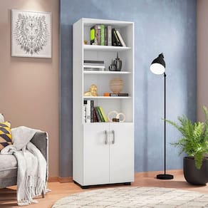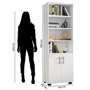 Características do Livreiro 5 Prateleiras c/ Porta Pequenas Office: - Produzida em MDP de alta qualidade; - Pés de Plástico; - Pintura UV Velluto; - 2 Portas de bater; - 6 Prateleiras ; - Não acompanha objetos de decoração;