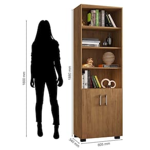 Dimensões do Livreiro 5 Prateleiras c/ Porta Pequenas Office: - Altura: 188 cm - Largura: 60,5 cm - Profundidade: 34 cm