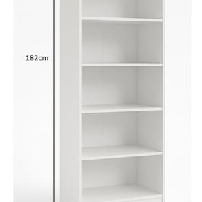 Altura: 1,82m, Largura: 57cm, Profundidade: 30cm.Livreiro com 5 prateleiras Acabamento da Prateleira: Finish Foil Ambiente Principal: Escritório Armário Suspenso: Não codigo_ean: 7900288229472 Complexidade da Montagem: Média: pode ser montado por mais de uma pessoa e/ou necessite de maior conhecimento para montagem Cor: Branco Cor do Produto: Branco Cor Interna: Branco Escala de Brilho: Semi-Fosco Escala de Brilho da Prateleira: Semi-Fosco Espessura do Tampo: 15 mm Formato do Armário: Retangular Itens Inclusos: 1 Estante, Kit Ferragem e Manual de Montagem Linha ou Coleção: Liz Localização do Nicho: Nicho em Cima Manual de Montagem e Instalação: https://product-hub-prd.madeiramadeira.com.br/597874687/documents/c7f2ae5d-0030-4843-b0bf-a5fb2d06bfdc3199931612417577007120511.pdf Marca: Móveis Menezes Material da Prateleira: MDP Material Principal: MDP Necessita Montagem: Sim Orientação do Armário: Vertical Origem do Produto: Nacional Peso: 20 kg Peso Máximo por Prateleira: 5 kg Possui Espelho: Não Possui Mesa Retrátil: Não Possui Nicho: Sim Possui Pés: Não Possui Portas: Não Possui Prateleiras: 04 Quantidade de Armários: 1 Recomendações de Uso, Manutenção e Limpeza: não molhar, usar pano seco para limpeza. Sapatas Niveladoras: Não Sistema de Montagem: parafusos Suporta Até (kg): 20 kg Tamanho do Armário: Alto (Acima de 150cm) Tipo de Armário: Semi-Fechado Marca: Não Informado