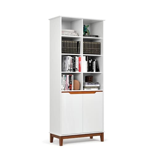 Seu design clean e moderno não só embeleza o espaço, mas também oferece amplo espaço de armazenamento para livros, decorativos e muito mais.