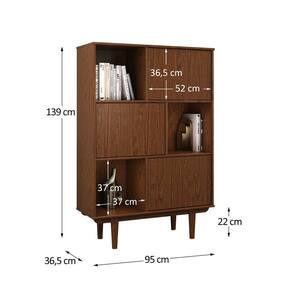 Os pés altos e o recorte curvo na base completam o visual elegante, permitindo fácil limpeza e deixando a estante mais leve no espaço. Ideal para salas, escritórios ou dormitórios que buscam um móvel marcante e versátil, com presença e refinamento.
