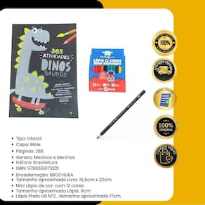 Contém : 1 unidade Livro Infantil 365 Atividades Educativas Aprenda em Casa + 12 unidades mini lápis de cor + 1 lápis grafite 2/HB. Uma seleção de atividades de raciocínio matemático, associação e memorização, além de outros enfoques estão reunidas para divertir, instruir e estimular a criatividade e imaginação dos pequenos e vorazes leitores. Esta obra contém atividades de coordenação motora, letras, palavras, escrita, opostos, formas, números, operações matemáticas, desenhos para colorir, caça-palavras, Cruzadinhas, labirintos, ligação de ponto e muito mais Complete o aprendizado da criança, de forma lúdica, flexível e progressiva. Habilidades desenvolvidas: - Estímulo visual; - Concentração; - Coordenação motora; - Criatividade e Imaginação; - Reduz e ansiedade. Autor: Todolivro Páginas: 288 Dimensões: 15,5 x 22 cm Formato: Brochura Faixa etária: 5 anos. Marca: BrasiLeitura Faixa etária: A partir de 5 anos ISBN: 9786556173221 Editora: BrasiLeitura Dimensões: 15.50 x 22.00 cm Idioma: Português Diversão Garantida: Com 365 atividades emocionantes, o livro promete transformar cada dia em uma nova aventura cheia de diversão e aprendizado. Desenvolvimento Criativo: Estimula a criatividade das crianças através de jogos, labirintos e desafios que incentivam a imaginação e o pensamento crítico. Variedade de Jogos: Oferece uma ampla gama de atividades, garantindo que as crianças nunca fiquem entediadas e sempre tenham algo diferente para explorar. Qual é a medida de cada lápis de cor Cada lápis possui 9 cm de comprimento, um tamanho ideal para as mãos pequenas das crianças, facilitando o manuseio. Qual é a medida de lápis hb Possui 17 cm de comprimento.