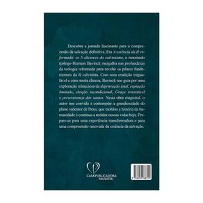 L1182. Medidas: 13,5 x 20,7 x 1cm.   Livro Espiritual Cristão A Essência da Fé Reformada. Os 5 Alicerces do Calvinismo. (Herman Bavinck).   CARACTERÍSTICAS:   Autor: Herman Bavinck Capa: Brochura Idioma: português Tamanho: 13,5 x 20,7cm Porte: Médio Páginas: 207 páginas   SOBRE O LIVRO: Descubra a jornada fascinante para a compreensão da salvação definitiva. Em “A essência da salvação: os 5 alicerces do calvinismo”, o renomado teólogo Herman Bavinck mergulha nas profundezas da teologia reformada para revelar os pilares fundamentais da fé calvinista. Com uma erudição inigualável e com muita clareza, Bavinck nos guia por uma exploração minuciosa da depravação total, expiação limitada, eleição incondicional, Graça irresistível e perseverança dos santos. Nesta obra magistral, o autor nos convida a contemplar a grandiosidade do plano redentor de Deus, que moldou a história da humanidade e continua a moldar nossas vidas hoje. Prepare-se para uma experiência transformadora e para uma compreensão renovada da essência da salvação.