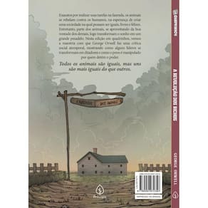 Autor: George Orwell Exaustos por realizar suas tarefas na fazenda, os animais se rebelam contra os humanos, na esperança de criar uma sociedade na qual possam ser iguais, livres e felizes. Entretanto, parte dos animais, se aproveitando da boa vontade dos demais, logo transformam o sonho em um grande pesadelo. Nesta edição em quadrinhos, vemos a maestria com que George Orwell faz uma crítica social atemporal, mostrando como alguns líderes se transformam em ditadores e como o povo é por quem detém o poder. Todos os animais são iguais, mas uns são mais iguais do que outros. Editora: Principis Ilustrador: Pedro Okuyama Idioma: Português Páginas: 96 Dimensões: L 15.50 x A 22.60 x E 1.00 ISBN: 9786550972356 Coleção: Clássicos em quadrinhos Faixa Etária: + 12 anos Assuntos tags : Literatura estrangeira, Política, Sociedade, Reflexão, Inglaterra, Clássicos em quadrinhos , Crítica social, Adaptação, Sátira , Fábula BISAC: Histórias em Quadrinhos & Graphic Novels / Literária Encadernação: Brochura Acabamento: Laminação brilho Marca: Não Informado Ean: 9786550972356
