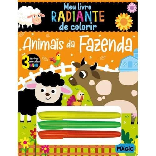 Você vai se encantar com este livro de colorir super diferente, que vem com canetinhas de cores vivas e radiantes, para deixar os animais da fazenda ainda mais incríveis.