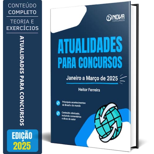 Livro Atualidades para Concursos - Janeiro a Março de 2025 Livro Atualidades para Concursos - Janeiro a Março de 2025 -LV215-25-ATUALIDADES-PRIM-TRIM-IMP Instituição Atualidades Estado Nacional Edição Oficial Páginas 124 Em relação as principais características deste livro, você encontrará: - Passo a passo para o estudo de Atualidades; - Divisão em fatos do Brasil e Mundo; - Linguagem clara e objetiva; - Dicas e destaques para itens de maior atenção.