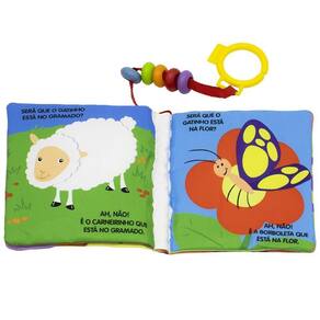SOBRE ESTE LIVRO Nas coloridas páginas deste livro fofinho de pano, feito para brincar e aprender, o bebê terá um primeiro contato com seus pequenos amigos animais.
