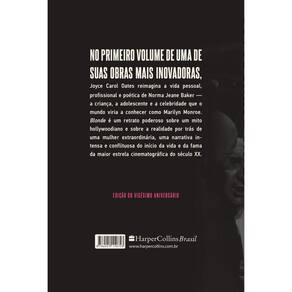 Livro finalista do National Book Award Em um de seus livros mais inovadores, Joyce Carol Oates reimagina a vida pessoal, profissional e poética de Norma Jeane Baker - a criança, a adolescente e a celebridade que o mundo viria a conhecer como Marilyn Monroe. Com uma narrativa intensa e conflituosa, a obra é um retrato poderoso sobre um mito hollywoodiano e sobre a realidade por trás de uma mulher extraordinária. No primeiro volume de Blonde, é apresentada a juventude - pontuada por sua complicada relação com a mãe e pelo pai que nunca conheceu -, o casamento e a sexualização precoces e os primeiros trabalhos de uma das figuras mais famosas e trágicas do mundo do cinema. Especificações Título: Blonde - Vol. 1 Autor: Joyce Carol Oates Tipo de capa: Brochura Número de páginas: 400 páginas Data de publicação: 15/01/2021 Idioma: Português ISBN: 9786555110753 Editora: Casa dos Livros Editora Ltda Selo: HarperCollins Brasil