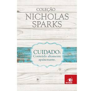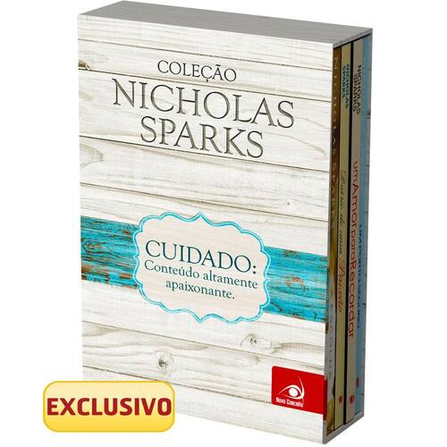 Mais de 80 milhões de exemplares vendidos em todo o mundo; esse é o maior indício do sucesso de Nicholas Sparks. O escritor norte americano conquistou os leitores com seu texto envolvente, histórias e personagens cativantes, seus dramas e romances. No Box Nicholas Sparks você terá 4 dos mais famosos de seus títulos: Um Porto Seguro, A Escolha, Diário de Uma Paixão e Um Amor Para Recordar.