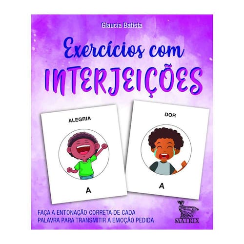 Interjeições são palavras que expressam emoções de formas variadas, de acordo com o contexto e a entonação que se dá a elas. Um simples a pode significar alívio, dor, espanto e muito mais. Este livro-caixinha traz 40 cartas, divididas em cinco grupos de vogais. E, para cada vogal, oito possibilidades de entonação relativas a emoções e situações específicas. Uma obra divertida e inclusiva que estimula o desenvolvimento da linguagem e o desempenho de competências sociais. As imagens contemplam variações da diversidade humana quanto à cor da pele e características físicas. É destinada a crianças, adolescentes, adultos e idosos. Pode ser utilizada por famílias, terapeutas, médicos, professores, atores e profissionais de qualquer área do desenvolvimento humano.